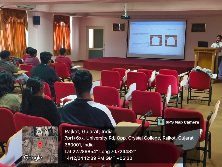 Oraganised a seminar on 3D Printing Technology to introduce students to modern manufacturing concepts Provided basic knowledge of additive manufacturing and its industrial application. The seminar helped the students to understand working principles, materials, and real-life uses od 3D printing. Encouraged innovation and project-based learning through emerging technology exposure.