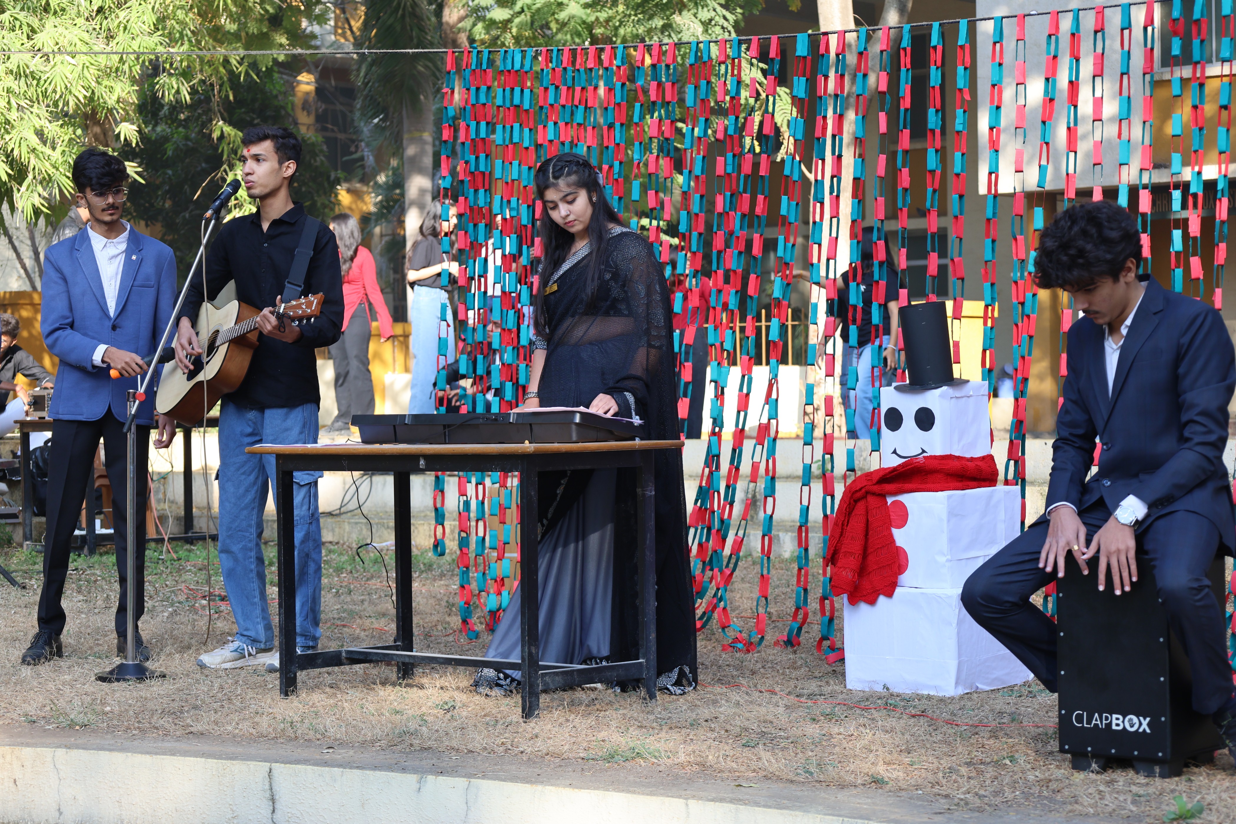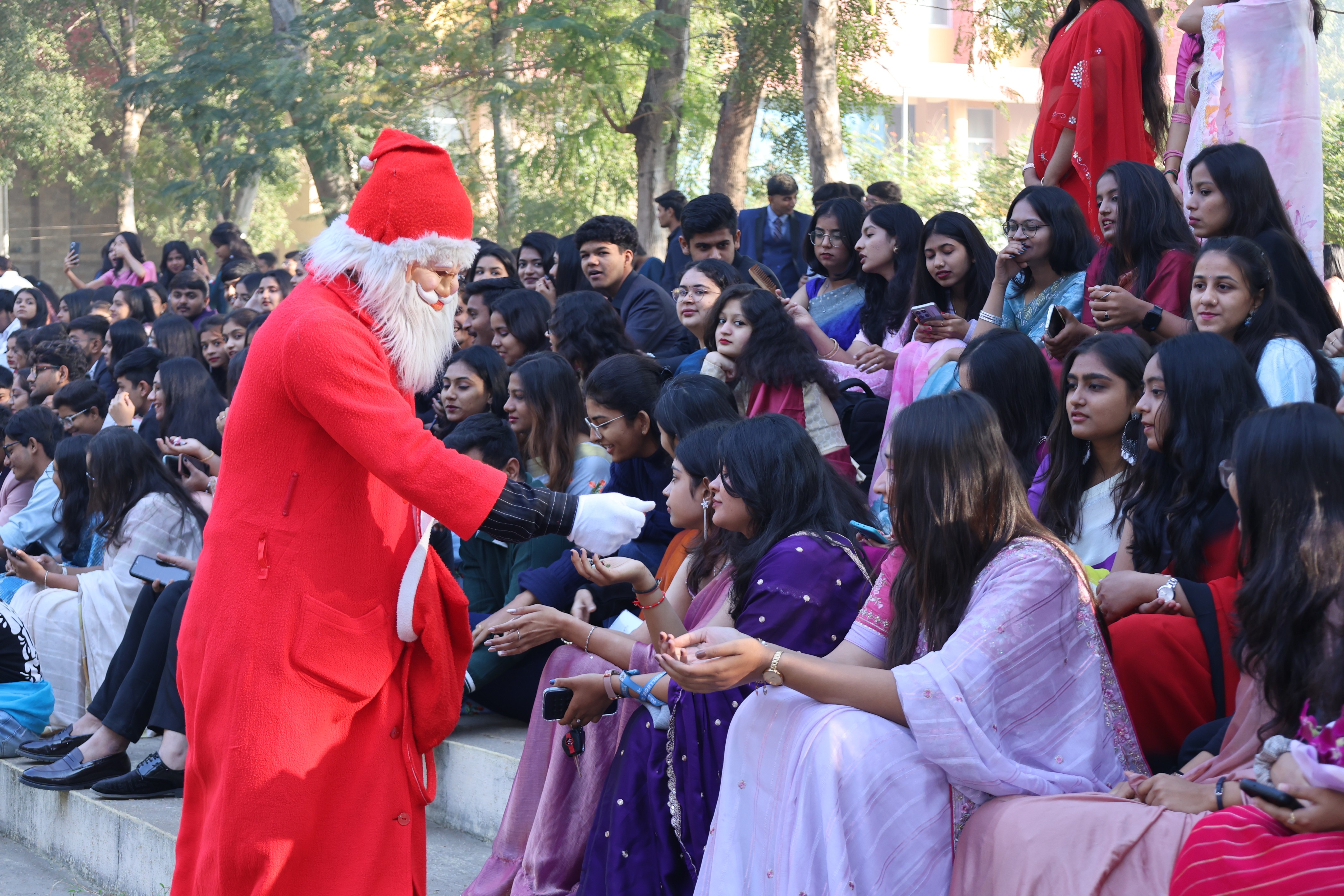 The event was anchored by Zeel Lathiya and Jugi Gokani. It included a variety of performances by student, creating a joyful festive atmosphere. Students were also appreciated with gifts for the Best Well-Dressed Male and Female. A separate Christmas celebration for faculty members were also organized on the same da, followed by a potluck, encouraging togetheness and celebration among the staff.