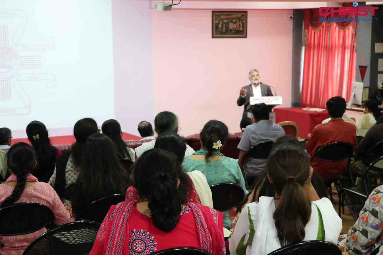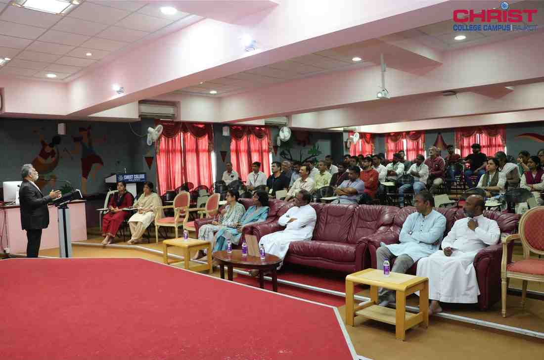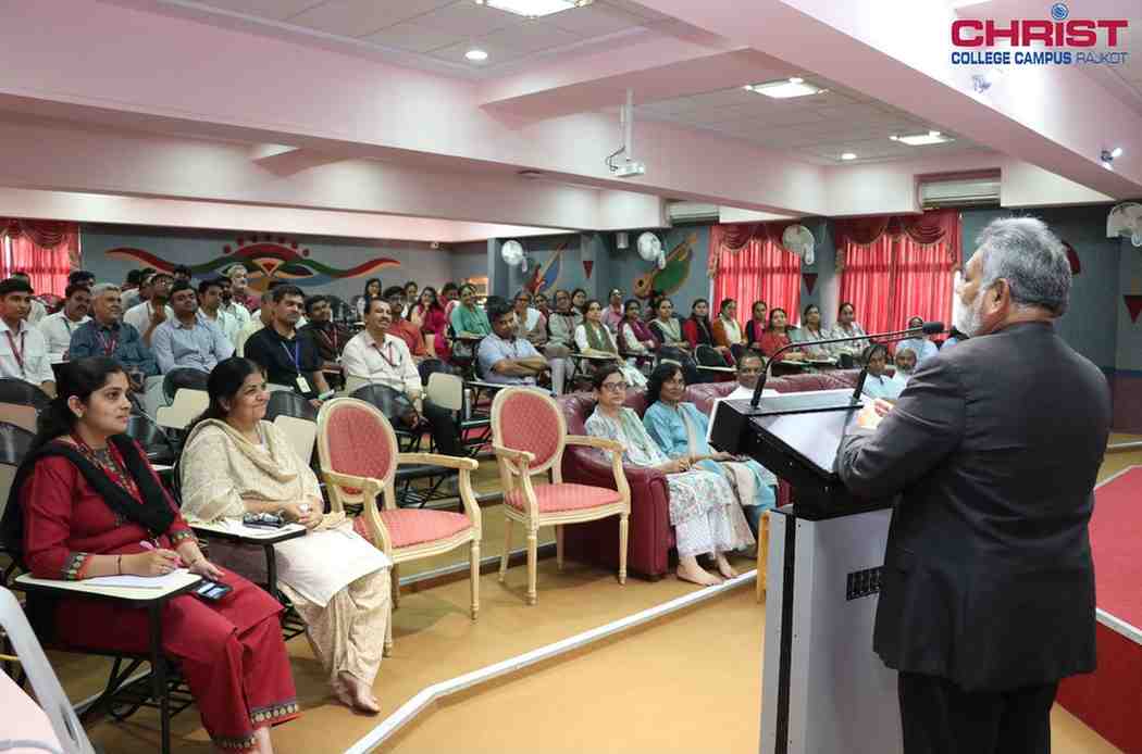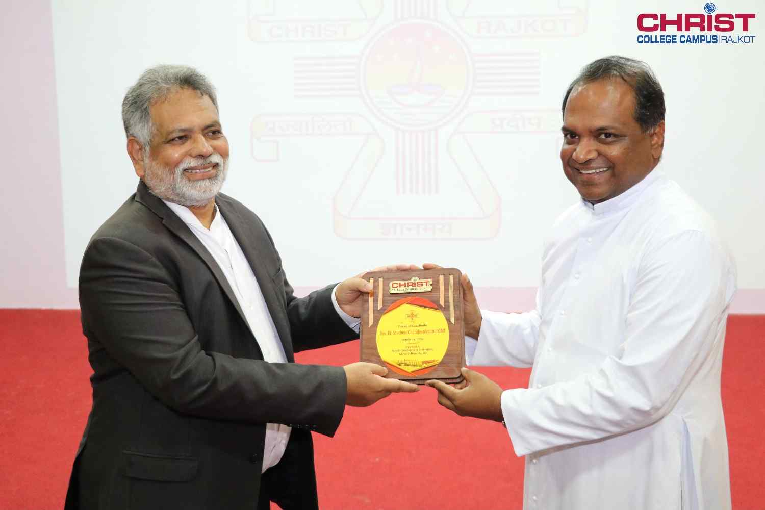 An inspiring Faculty Development Programme (FDP) on “Quantum Mechanics and the Nature of Reality” was conducted by Rev. Fr. Dr. Mathew Chandrankunnel, CMI, Consultant at JIS University, Kolkata, at Christ College Campus, Rajkot.