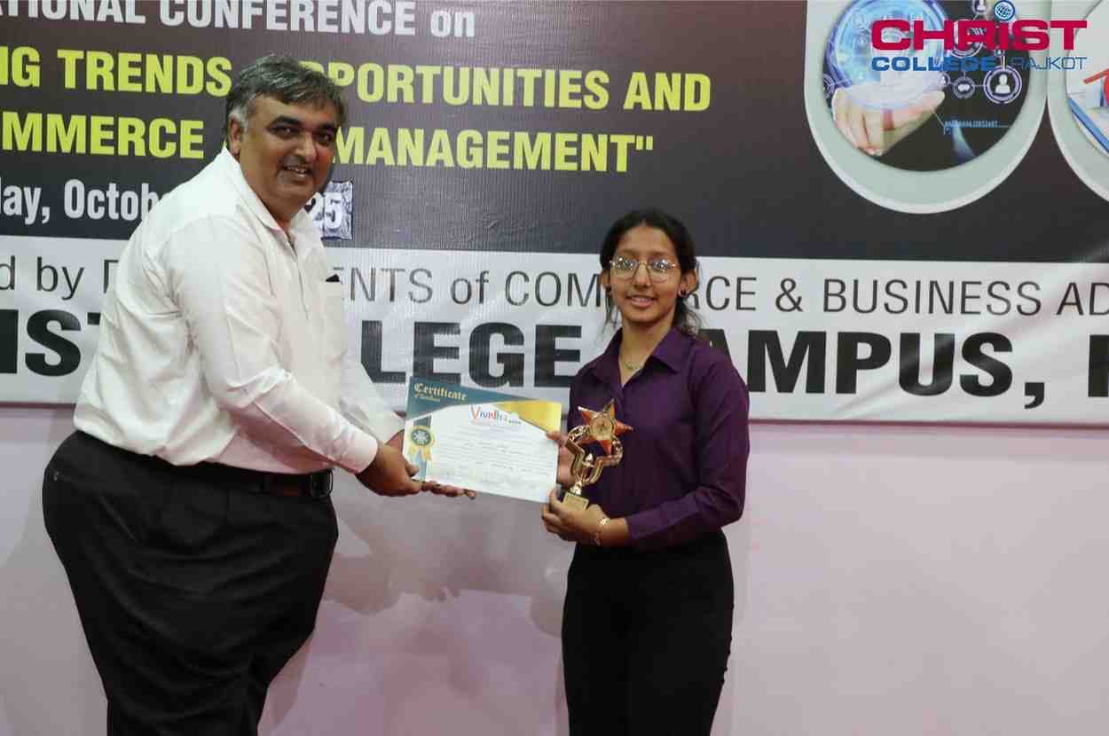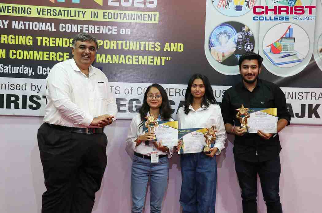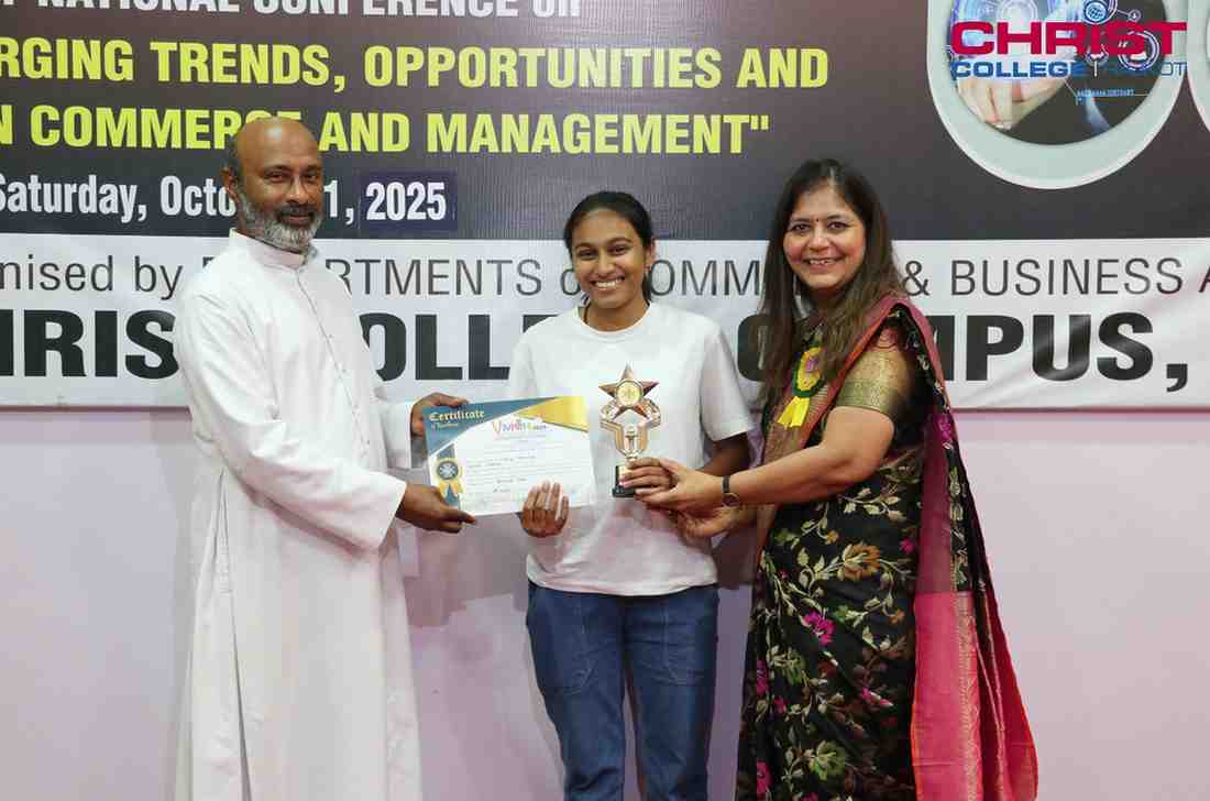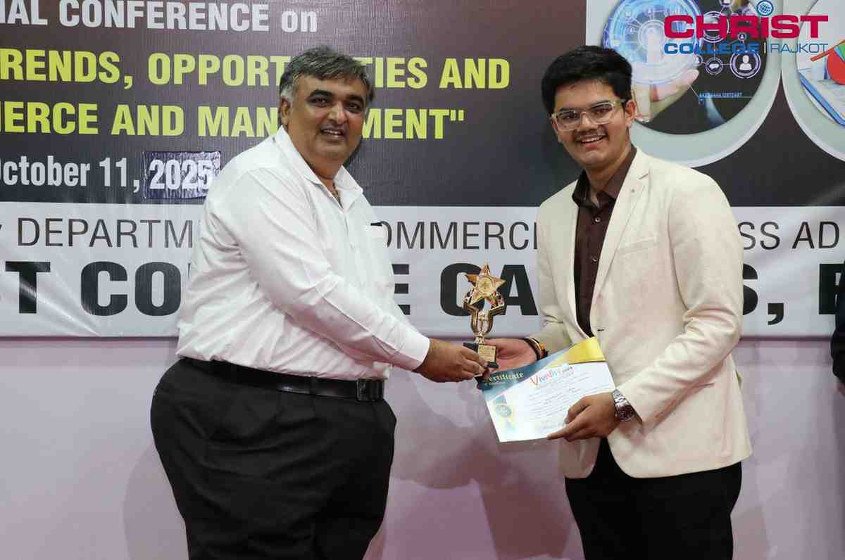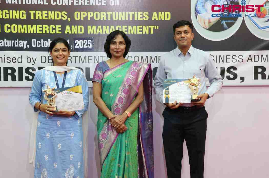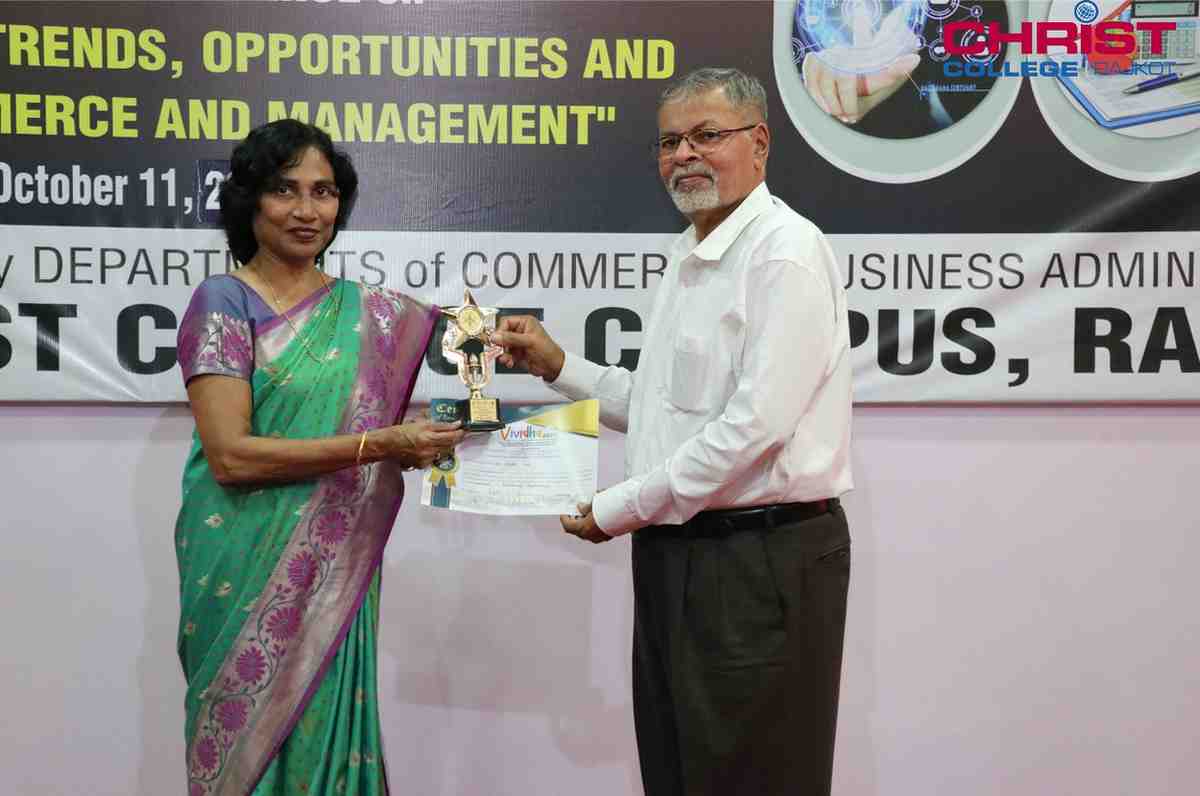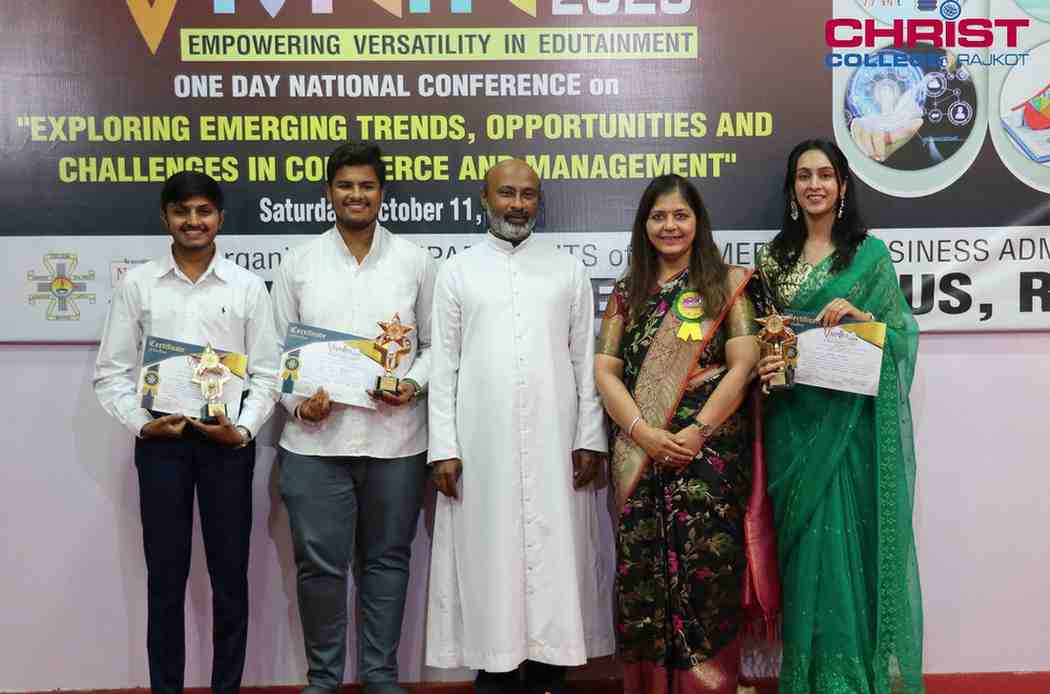 The Valedictory Ceremony, coordinated by Dr. Gaurav Vora, marked a fitting conclusion to the event. Awards for best research papers and posters were presented by Fr. Stanley Joseph (Patron), Dr. Yvonne Fernandes (Principal), and the panel of judges, recognizing exceptional contributions in both Commerce and Management categories.