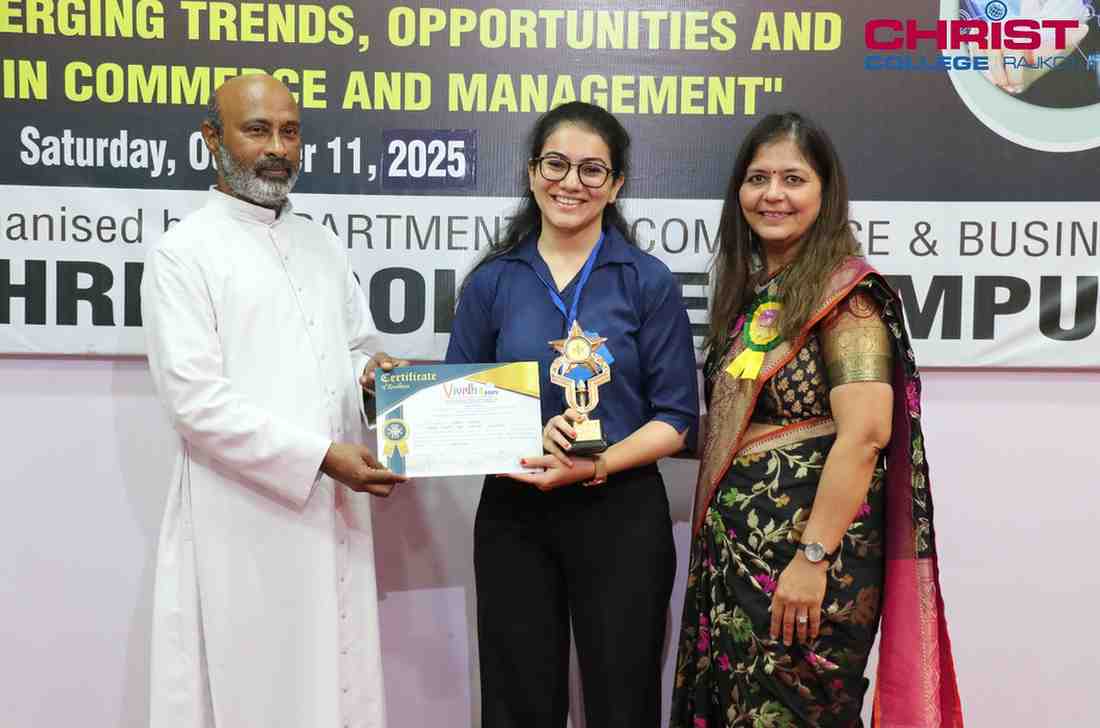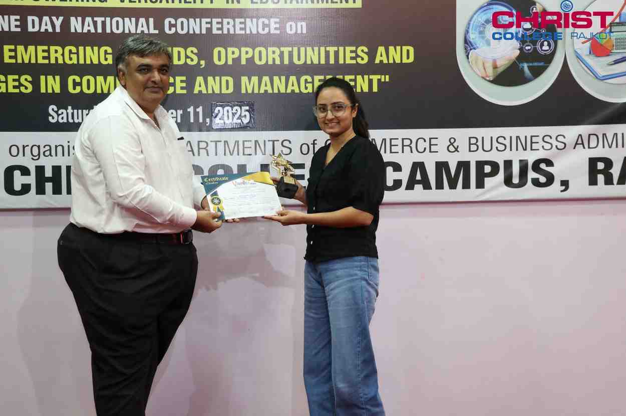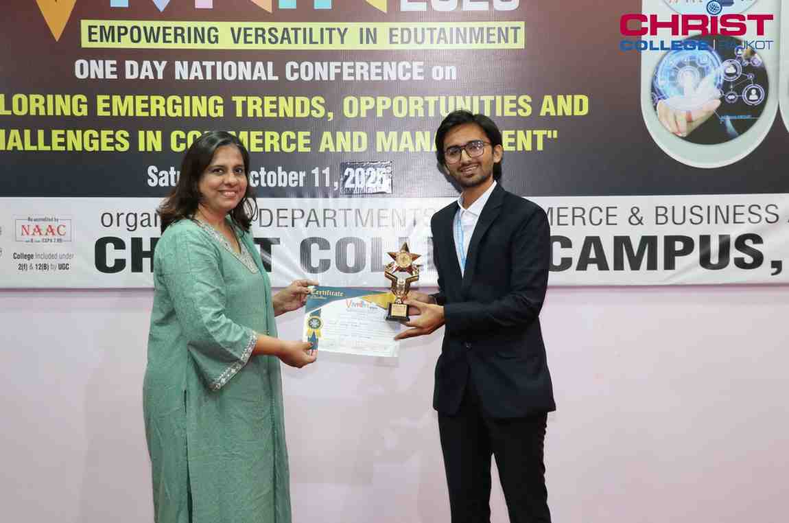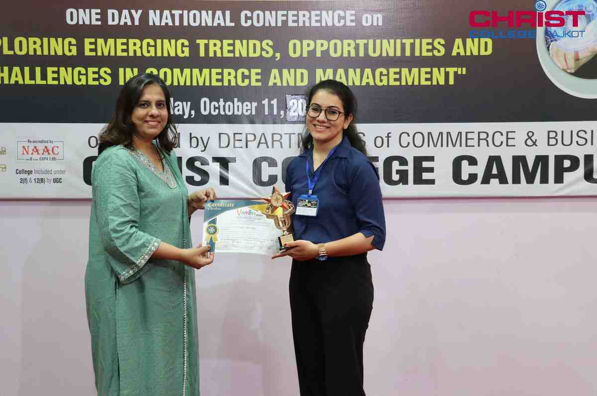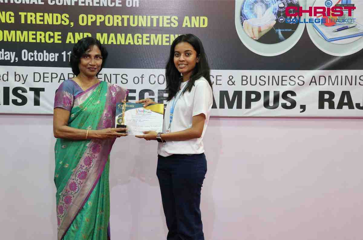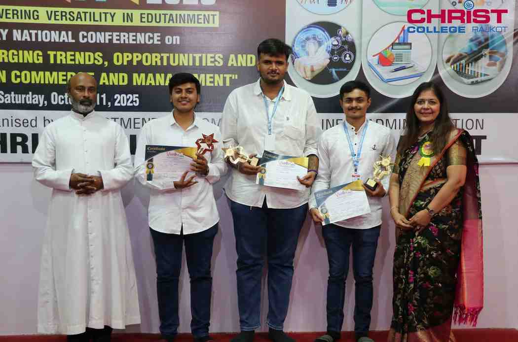 The Valedictory Ceremony, coordinated by Dr. Gaurav Vora, marked a fitting conclusion to the event. Awards for best research papers and posters were presented by Fr. Stanley Joseph (Patron), Dr. Yvonne Fernandes (Principal), and the panel of judges, recognizing exceptional contributions in both Commerce and Management categories.